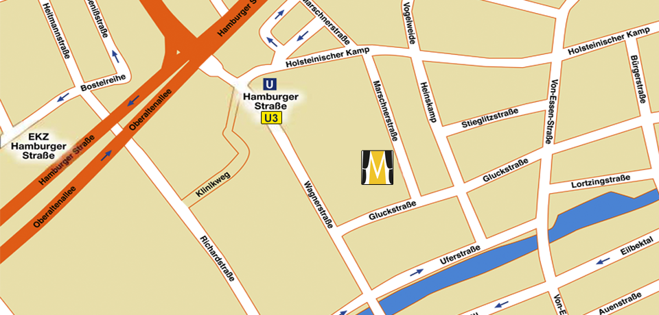 Das Theater an der Marschnerstrasse befindet sich in Hamburg Barmbek. Dort, wo auch der Hauptsitz der Kulturellen Vereinigung und die Kita Barmbek beheimatet sind, finden Sie unser Theater, sowie unsere Theatergeschäftsstelle und das ABO-Büro.Das Theater an der Marschnerstrasse ist bequem mit der U-Bahn U3, BUS 261 oder BUS X22 und 3 Minuten Fußweg von der Haltestelle „Hamburger Strasse“ zu erreichen.Wir sind für Sie Telefonisch, per Fax, email oder selbstverständlich während unserer Öffnungszeiten auch persönlich zu erreichen:Montag, Dienstag, Donnerstag 10.00 - 17.00 UhrFreitag 10.00 bis 16.00 UhrTel.: 040 - 29 26 65Fax: 040 - 298 20 542info@tadm.de