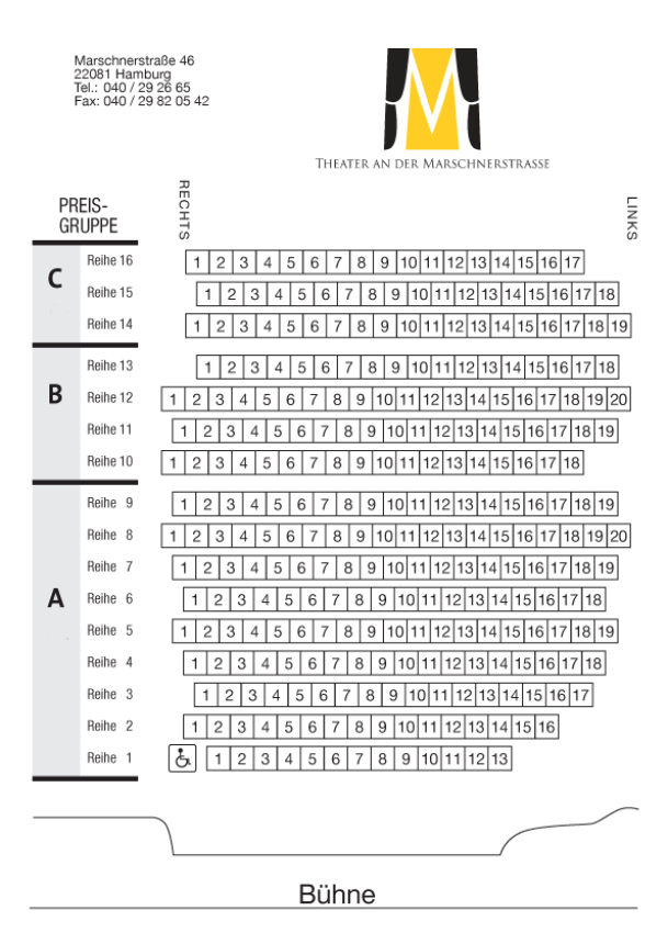 Auf 3 Ebenen haben Sie auf 288 Sitzen bei uns beste Sicht auf die Bühne! Unser Theater ist barrierefrei und verfügt über eine Induktionsanlage für Hörgeräte.