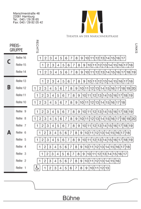 Auf 3 Ebenen haben Sie auf 288 Sitzen bei uns beste Sicht auf die Bühne! Unser Theater ist barrierefrei und verfügt über eine Induktionsanlage für Hörgeräte.